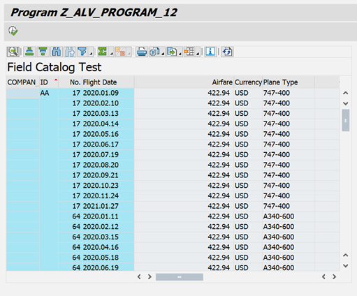 ▪아래 예제는 CARRID, CONNID, PRICE 3개의 필드를 카탈로그로 구성하여 화면에 보이도록 한다. 이전에 만들어논 템플릿을 수정하여 아래 구문을 추가하도록 하자.
