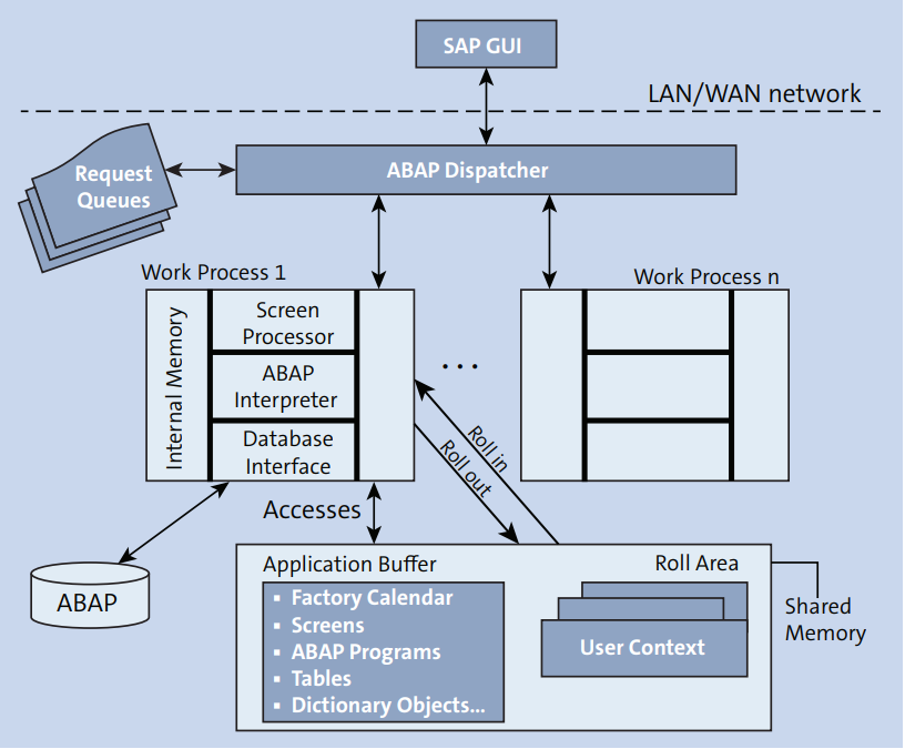 ABAP 컨설턴트들은 Application Server의 설치나 유지보수와 직접적으로 관련되지 않습니다. 이는 Basis 컨설턴트의 역할입니다. 그러나 ABAP 프로그램이 Application Server에서 실행되기 때문에, Application Server의 다양한 구성 요소(및 역할)를 알면 ABAP 프로그램이 실행될 때 발생하는 백엔드 프로세스를 이해하는 데 도움이 됩니다.