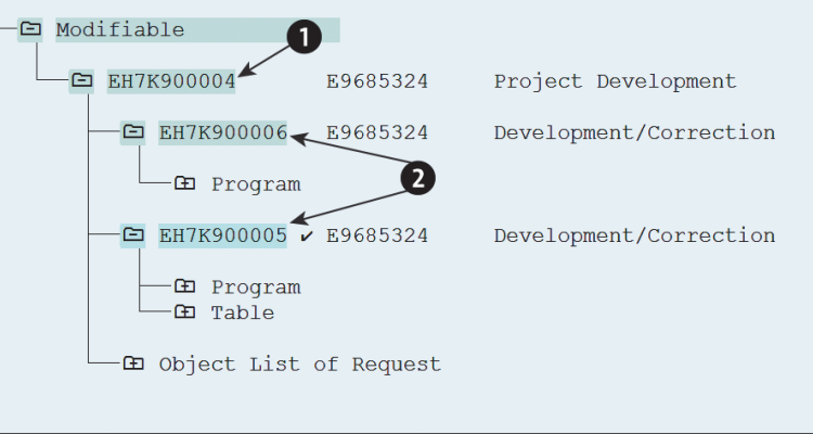 위 그림은 1번 : Request와 2번 Task를 Transport Organizer에서 확인한 예시입니다.