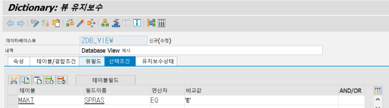 6. Maint.Status 탭에서 유지보수상태를 설정할 수 있습니다. 하나 이상의 basis table을 가지는 Database View는 오직 read만 가능합니다.
