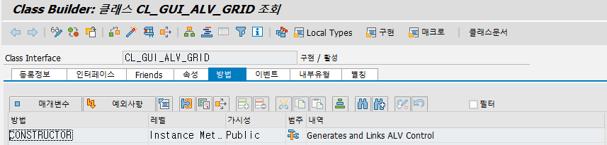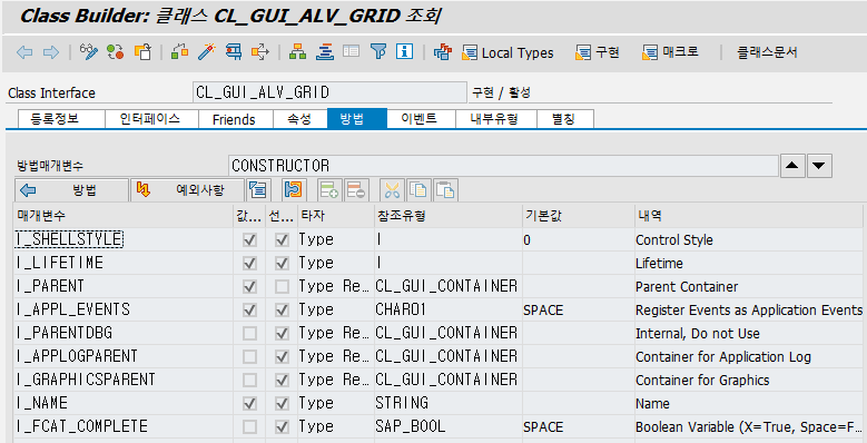 위 예시에서 볼 수 있듯이, instance constructor는 PUBLIC SECTIO에 정의하였고, 하나의 Importing Parmeter와 Exception을 가지고 있습니다. constructor는 하나가 아니라 다수의 Importing Parameter와 Exceptions를 가질 수 있습니다.