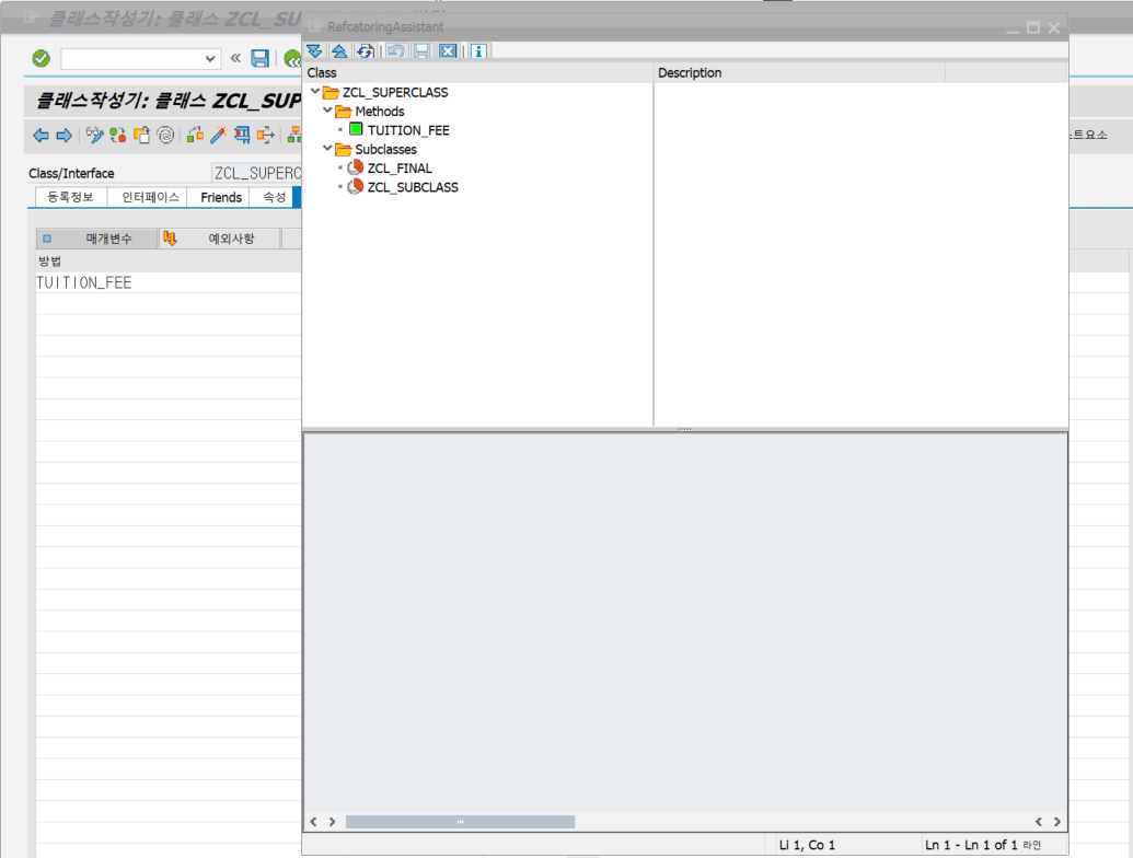 이런 경우에는 Class builder(SE24)에 있는 Recactoring Assistant를 사용하여 클래스의 Component의 위치를 위,아래로 옮길 수 있습니다. 이 방법은 많은 노력을 절약해주고 실수를 쉽게 수정할 수 있게 해줍니다.